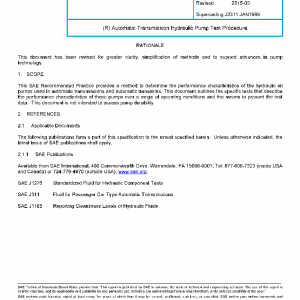 This SAE Recommended Practice provides a method to determine the performance characteristics of the hydraulic oil pumps used in automatic transmissions and automatic transaxles. This document outlines the specific tests that describe the performance characteristics of these pumps over a range of operating conditions and the means to present the test data. This document is not intended to assess pump durability.