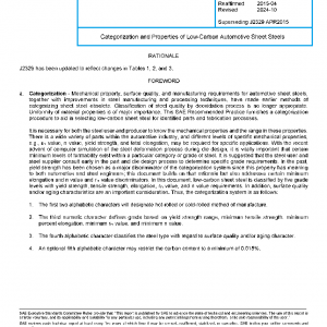 This SAE Recommended Practice establishes mechanical property ranges for low-carbon automotive hot-rolled sheet, cold-rolled sheet, and metallic-coated sheet steels. It also contains information that explains the different nomenclature used with these steels.