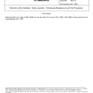 This SAE Standard specifies minimum performance and test criteria for brake systems to enable uniform assessment of the braking capability of walk-along self-propelled work machines with a mass greater than 115 kg. Service and parking brake systems are covered by this document.