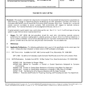 The SAE J2334 lab test procedure should be used when determining cosmetic corrosion performance for a particular coating system, substrate, process, or design. Since it is a field correlated test, it can be used as a validation tool as well as a development tool. If corrosion mechanisms other than cosmetic or general corrosion are to be examined using this test, field correlation must be established.