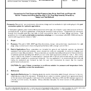 This part of SAE J2337 specifies dimensions, design, and performance requirements for eight plugs using a conical seal to insure leak proof performance with a design factor of 4 to 1.