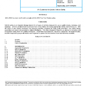 This SAE Information Report identifies and defines the preferred technical guidelines relating to safety for vehicles that contain High Voltage (HV), such as Electric Vehicles (EV), Hybrid Electric Vehicles (HEV), Plug-In Hybrid Electric Vehicle (PHEV), Fuel Cell Vehicles (FCV) and Plug-In Fuel Cell Vehicles (PFCV) during normal operation and charging, as applicable. Guidelines in this document do not necessarily address maintenance, repair, or assembly safety issues.