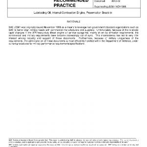This SAE Standard covers military engine oils suitable for preservation, break-in, and lubrication of reciprocating internal combustion engines of both spark-ignition and compression-ignition types and of power transmission fluid applications in equipment used in combat/tactical service (see 7.1). This document is equivalent to MIL-L-21260 when all requirements are met.