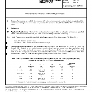 The purpose of this SAE Recommended Practice is to provide dimensions for both standard and thin-wall hoses and to provide commercial and precision tolerances for SAE 20R3 and SAE 20R4 coolant system hoses.