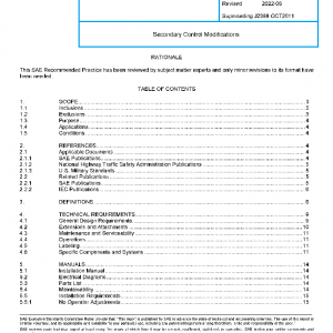 This SAE Recommended Practice establishes a uniform procedure for assuring the manufactured quality, installed utility and performance of automotive products to the relocation, alteration, replacement, and/or extension of secondary controls and systems other than those provided by the vehicle manufacturer (OEM). These products are intended to provide driving capability to persons with physical disabilities. These products function as adaptive modifications to compensate for lost or reduced function in the extremities of the driver. These include, but are not limited to, the following: