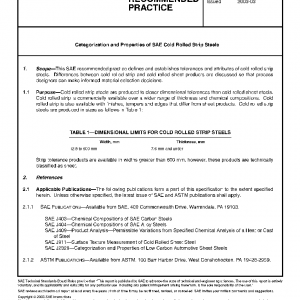 This SAE recommended practice defines and establishes tolerances and attributes of cold rolled strip steels. Differences between cold rolled strip and cold rolled sheet products are discussed so that process designers can make informed material selection decisions.