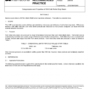 This SAE recommended practice defines and establishes tolerances and attributes of cold rolled strip steels. Differences between cold rolled strip and cold rolled sheet products are discussed so that process designers can make informed material selection decisions.