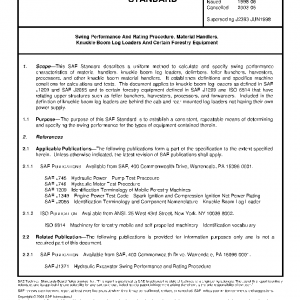 The purpose of this SAE Standard is to establish a consistent, repeatable means of determining and specifying the swing performance for the types of equipment contained therein.