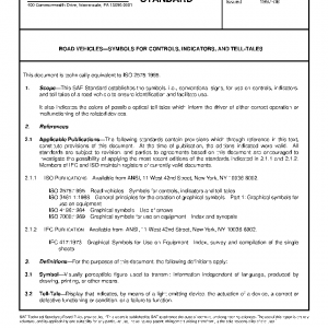 This SAE Standard establishes the symbols, i.e., conventional signs, for use on controls, indicators, and tell-tales of a road vehicle to ensure identification and facilitate use.