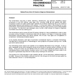This SAE Recommended Practice is applicable to all E/E systems on MD and HD vehicles. The terms defined are largely focused on compression-ignited and spark-ignited engines. Specific applications of this document include diagnostic, service and repair manuals, bulletins and updates, training manuals, repair data bases, under-hood emission labels, and emission certification applications.
