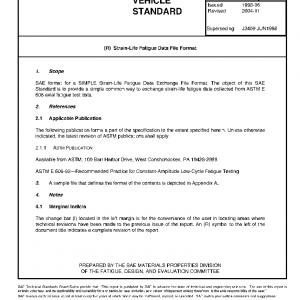 SAE format for a SIMPLE Strain-Life Fatigue Data Exchange File Format. The object of this SAE Standard is to provide a simple common way to exchange strain-life fatigue data collected from ASTM E 606 axial fatigue test data.