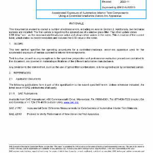 This test method specifies the operating procedures for a controlled-irradiance, xenon-arc apparatus used for the accelerated exposure of various automotive interior trim components.