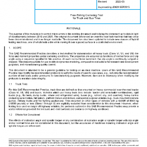 This SAE Recommended Practice describes a test method for determination of heavy truck (Class VI, VII, and VIII) tire force and moment properties under cornering conditions. The properties are acquired as functions of normal force and slip angle using a sequence specified in this practice. At each normal force increment, the slip angle is continually ramped or stepped. The data are suitable for use in vehicle dynamics modeling, comparative evaluations for research and development purposes, and manufacturing quality control.