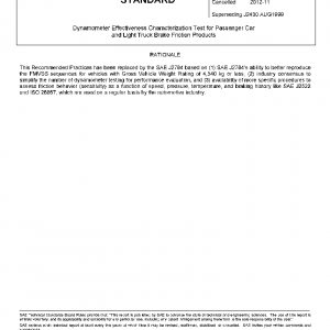 Dynamometer Effectiveness Characterization Test for Passenger Car and Light Truck Brake Friction Products(Cancelled Nov 2012)