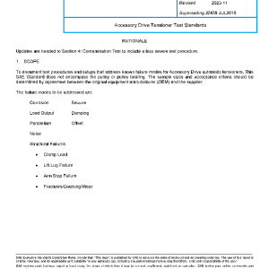 To document test procedures and setups that address known failure modes for Accessory Drive automatic tensioners. This SAE Standard does not encompass the pulley or pulley bearing. The sample sizes and acceptance criteria should be determined by agreement between the original equipment manufacturer (OEM) and the supplier.