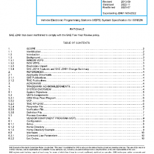 This system specification, SAE J2461, was a revision of the requirements for Vehicle Electronics Programming Stations (VEPS) set forth in SAE J2214, Vehicle Electronics Programming Stations (VEPS) System Specification for Programming Components at OEM Assembly Plants (Cancelled Jun 2004). The J2214 standard has been cancelled indicating that it is no longer needed or relevant.