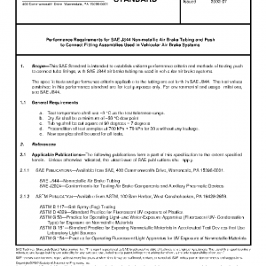 This SAE Standard is intended to establish uniform performance criteria and methods of testing push to connect tube fittings, with SAE J844 air brake tubing as used in vehicular air brake systems.