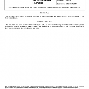 SAE Design Guideline: Metal Belt Drive Continuously Variable Ratio (CVT) Automatic Transmissions(STABILIZED Sep 2011)