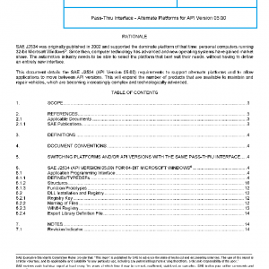 This SAE Recommended Practice details the changes needed to support the SAE J2534 (API Version 05.00) on operating systems other than 32-bit Microsoft Windows®.