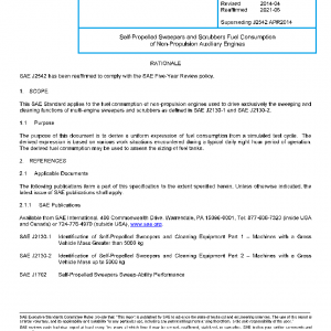 This SAE Standard applies to the fuel consumption of non-propulsion engines used to drive exclusively the sweeping and cleaning functions of multi-engine sweepers and scrubbers as defined in SAE J2130-1 and SAE J2130-2.