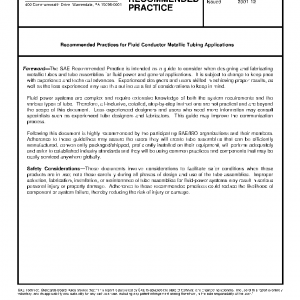 These recommended practices provide general recommendations for designing and fabricating metallic tubes and tube assemblies for fluid power applications utilizing commonly available manufacturing methods and general guidelines for tube selection and application. These documents are primarily intended for mobile/stationary industrial equipment and automotive applications. Aircraft and Aerospace applications were not considered during the preparation of this document.