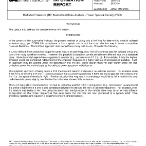 This SAE Information Report defines a procedure for indicating the severity of narrowband emissions from an electronic system-component.