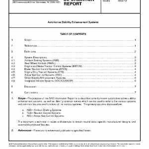 The purpose of this SAE Information Report is to describe currently known automotive active stability enhancement systems, as well as identify common names which can be used to refer to the various systems and common features and functions of the various systems. The primary systems discussed are: