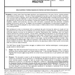 This SAE Recommended Practice defines an architecture, including operating modes, in which an advanced driver interface system and related software exist. It also provides reference to a set of Federal Highway Administration approved guidelines for human factors characteristics of such systems and related software.
