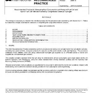 This SAE Recommended Practice establishes uniform procedures for testing fuel cell and hybrid fuel cell electric vehicles, excluding low speed vehicles, designed primarily for operation on the public streets, roads and highways. The procedure addresses those vehicles under test using compressed hydrogen gas supplied by an off-board source or stored and supplied as a compressed gas onboard.