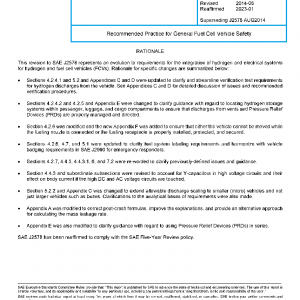 This SAE Recommended Practice identifies and defines requirements relating to the safe integration of the fuel cell system, the hydrogen fuel storage and handling systems (as defined and specified in SAE J2579) and high voltage electrical systems into the overall Fuel Cell Vehicle. The document may also be applied to hydrogen vehicles with internal combustion engines.