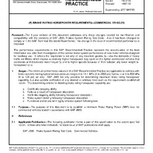 The minimum performance values in this SAE Recommended Practice are applicable to vehicles with brake systems having typical service pressure ranges 0 to 14.1 MPa (0 to 2050 psi) hydraulic or 0 to 830 kPa (0 to 120 psi) air only. SAE J880 not only provides for determining maximum brake rating horsepower capability, but also permits verification of any desired or arbitrary level such as the requirement established herein. The determining criteria for deciding brake rating horsepower capability are: