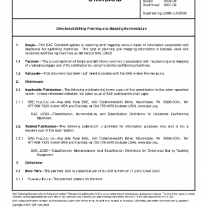 This SAE Standard applies to planning and mapping various types of information associated with directional boring/drilling machines. This type of planning and mapping information is typically used with horizontal earthboring machines as defined by SAE J2022.
