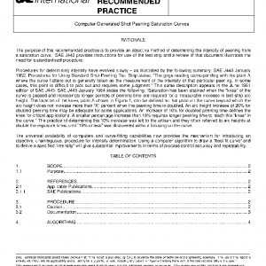 This SAE Recommended Practice defines a procedure for the use of computer generated saturation curves to determine peening intensity. Calculation of intensity within a tolerance band for each data set in Table 1 one is required for compliance with this practice.