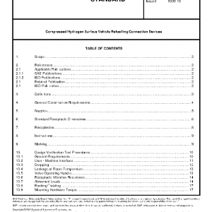 SAE J2600 applies to design, safety and operation verification of Compressed Hydrogen Surface Vehicle (CHSV) refuelling connection devices hereinafter referred to as nozzle and receptacle. CHSV Refuelling nozzles and receptacles shall consist of the following components, as applicable. Alternatives may be used as long as the alternative geometries shall not be interchangeable with the standard geometry specified in this SAE Standard and the standard geometry in Section 6 provides insufficient flow rates: