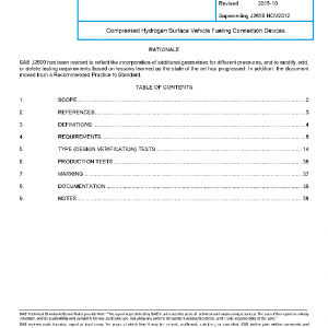 SAE J2600 applies to the design and testing of Compressed Hydrogen Surface Vehicle (CHSV) fueling connectors, nozzles, and receptacles. Connectors, nozzles, and receptacles must meet all SAE J2600 requirements and pass all SAE J2600 testing to be considered as SAE J2600 compliant.