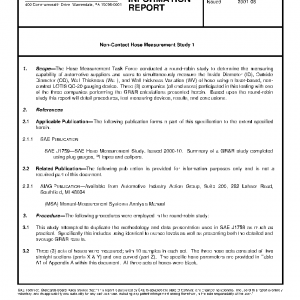 The Hose Measurement Task Force conducted a round-robin study to determine the measuring capability of automotive suppliers and users to simultaneously measure the Inside Diameter (ID), Outside Diameter (OD), Wall Thickness (Wall), and Wall thickness Variation (WV) of hose using a laser-based, non-contact LOTIS QC-20 gauging device. Three (3) companies (all end users) participated in this testing with one of the three companies performing the GR&R calculations presented herein. Based upon the round-robin study this report will detail procedures, test measuring devices, results, and conclusions.