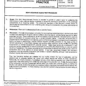 This SAE Recommended Practice is intended to provide a uniform basis for evaluating the effectiveness of rear underride devices employed to reduce the likelihood of penetration of the passenger compartment of an impacting vehicle. The procedures described in this report provide means for determining the characteristics of rear underride guard, taking into consideration the nature and direction of forces involved.