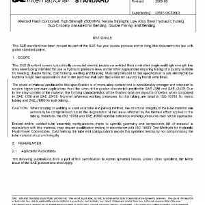 This SAE Standard covers sub-critically annealed electric resistance welded flash controlled single-wall high strength low alloy steel tubing intended for use in hydraulic pressure lines and in other applications requiring tubing of a quality suitable for bending, double flaring, cold forming, welding and brazing. Material produced to this specification is not intended to be used for single flare applications due to the potential leak path that would be caused by the ID weld bead.