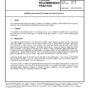 This recommended practice provides a guideline for qualifying automotive aftermarket, two-component structural foams, and defines a classification system for such foams.