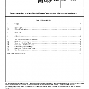 This SAE Standard defines test methods and general requirements at all phases of development, production, and field analysis of electrical terminals, connectors, and components that constitute the direct connection to the storage battery of road vehicles having 42 volt (nominal) electrical systems.