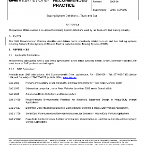 This SAE Recommended Practice identifies and defines terms specifically related to truck and bus braking systems including Antilock Brake Systems (ABS) and Electronically Controlled Braking Systems (ECBS).