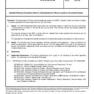 This SAE Standard specifies requirements for vulcanized rubbers in sheet form for use as standards in characterizing the effect of test liquids and service fluids. The annexes contain the standard reference elastomer formulas.