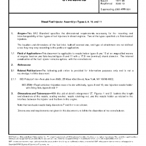This SAE Standard specifies the dimensional requirements necessary for the mounting and interchangeability of four types of fuel injectors in diesel engines. Two of the types specified are flats-located injectors.
