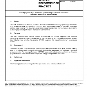 This SAE Recommended Practice provides a minimum standard for evaluating squeeze-type resistance spot welding (STRSW) equipment and minimum weld performance criteria for two-sided automotive collision repair welding. This document contains several standardized test methods that are designed for evaluating equipment performance in a laboratory environment.