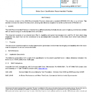 This document consists of two distinct tests: Part A, durability and speed maintenance test, and Part B, heat check drag sequence test. Each test can be considered to be an independent evaluation of the brake drum which tests different properties.