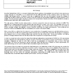 This SAE Information Report applies to liquefied natural gas used as vehicle fuel and requires LNG producers to provide the required information on the fuel composition and its “dispense by” date.