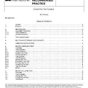 This SAE Recommended Practice is applicable to coolant filters installed on mobile or stationary equipment. It describes a body of tests used to characterize the stuctural integrity and filtration performance of coolant filters.
