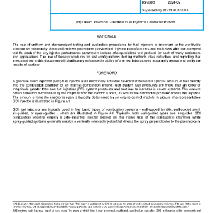 This SAE Recommended Practice promotes uniformity in the evaluation and qualification tests conducted on gasoline direct injection (GDI) fuel injectors used in gasoline engine applications, where fuel pressures are typically well above 10 MPa. The document scope is limited to electrically actuated gasoline fuel injection devices used in automotive GDI systems and is primarily restricted to bench tests.