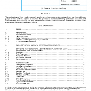 This SAE Recommended Practice also defines the minimum design verification testing that is recommended to verify the suitability of gasoline direct injection (GDI) high-pressure fuel pumps used for pumping gasoline or gasoline-blend fuels to direct injection gasoline injectors. Additional tests not specified in SAE J2714 will be required for non-automotive pump applications or pumps, such as those intended for use on aircraft, motorcycles, or marine equipment. The pump and the gasoline direct injector are complementary components, and the direct injector component is fully described in SAE J2713, which provides a full range of test procedures for the characterization of such injectors.