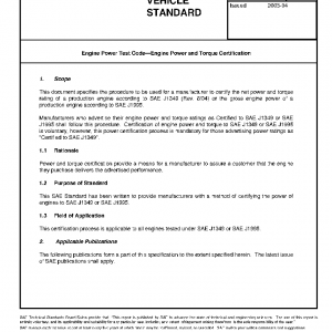 This document specifies the procedure to be used for a manufacturer to certify the net power and torque rating of a production engine according to SAE J1349 (Rev. 8/04) or the gross engine power of a production engine according to SAE J1995.